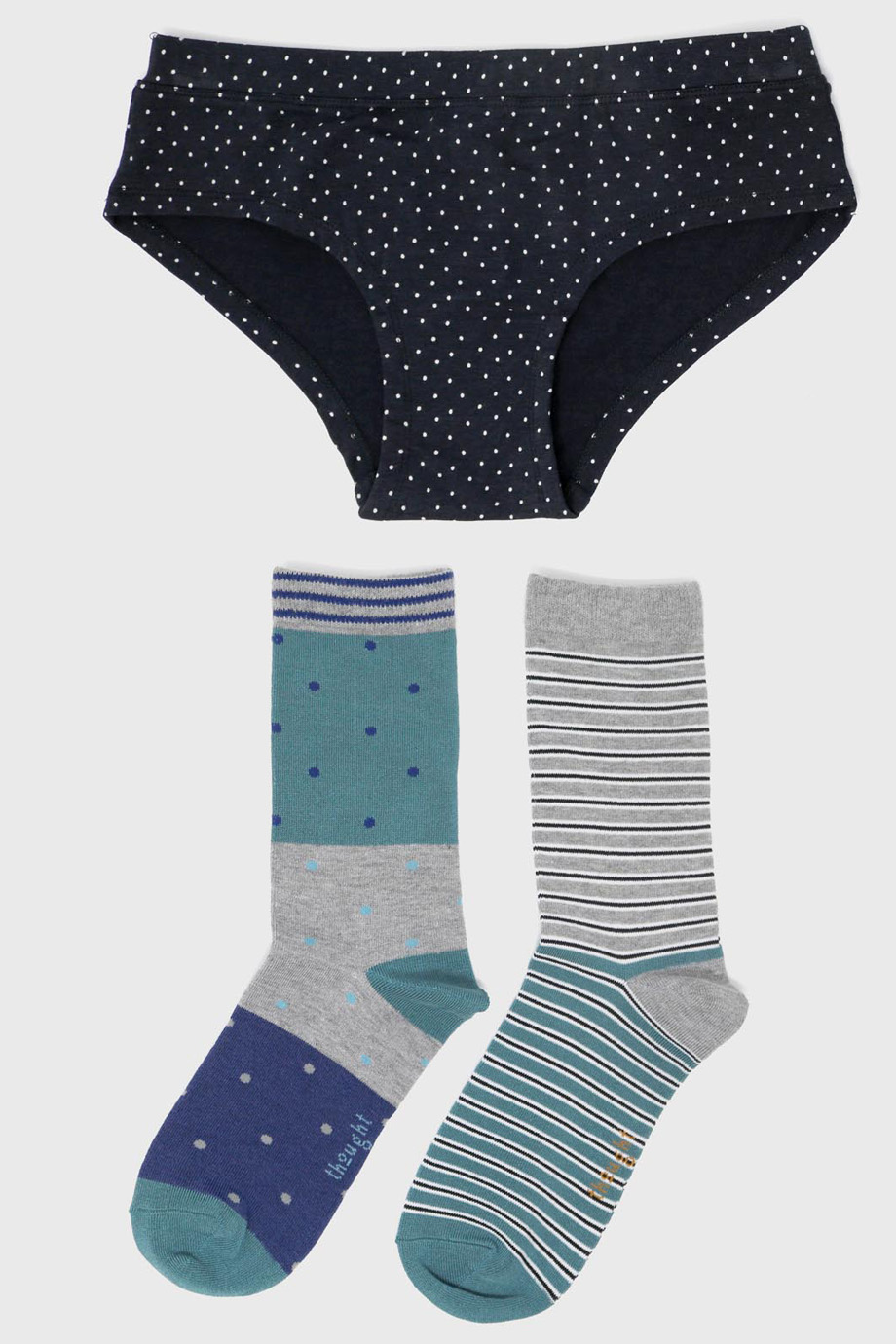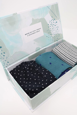 Κουτι με γυναικειο σλιπ απο απιστευτα απαλο μπαμπου και πιστοποιημενο οργανικο βαμβακι και δυο ζευγαρια καλτσες επισης απο βισκοζη που προερχεται απο μπαμπου και πιστοποιημενο οργανικο βαμβακι. Οι καλτσες και το σλιπ επιτρεπουν στο δερμα να αναπνεει φυσικα. Οι καλτσες ειναι one size. Συνθεση εσωρουχου: 67% Viscose που προερχεται απο Μπαμπου, 28% Πιστοποιημενο Οργανικο Βαμβακι, 5% Elastane.