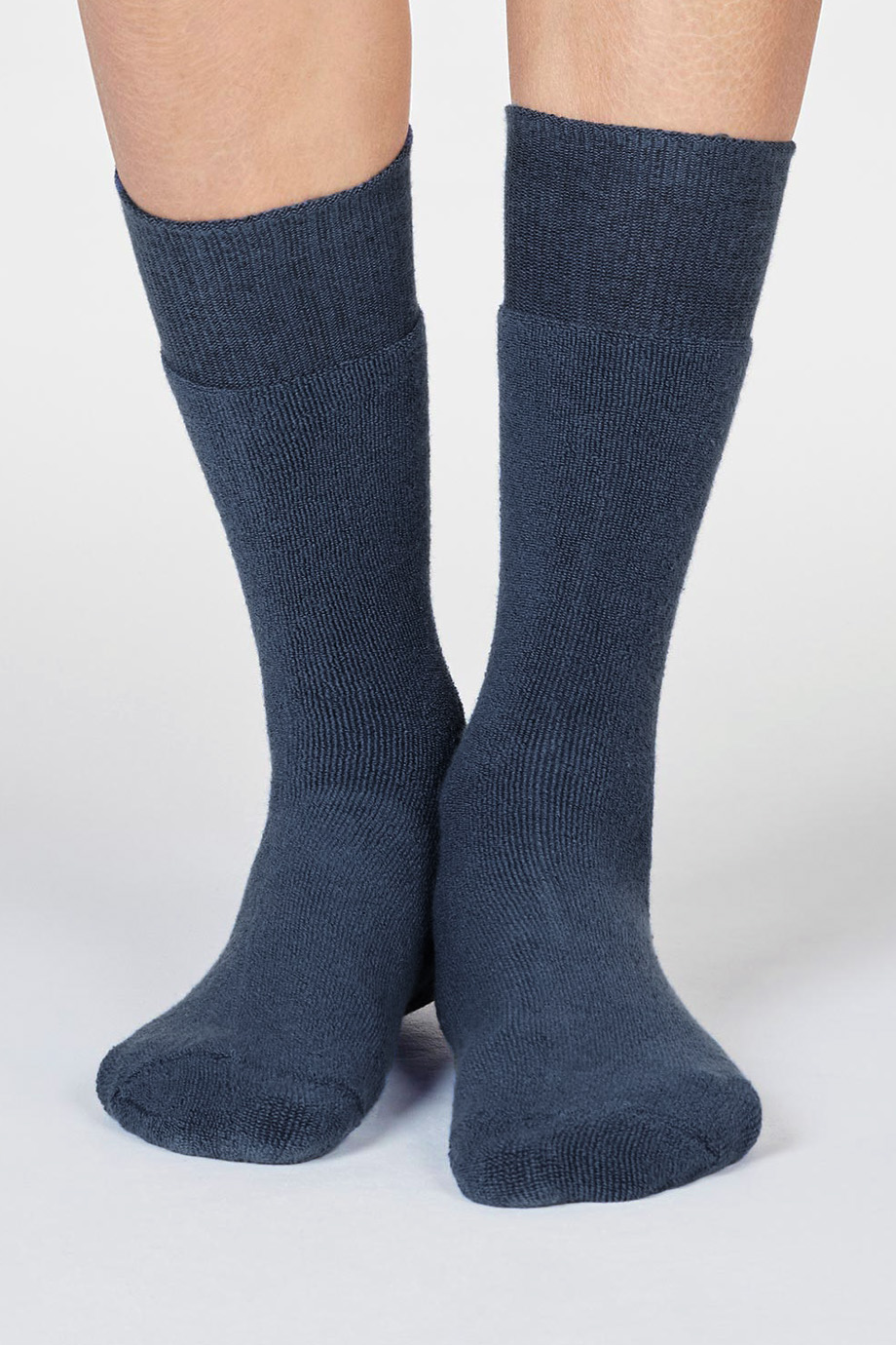 Καλτσες γυναικειες σκουρο γκρι-μπλε, παχιες με φαρδυ λεπτο rib στο τελειωμα ιδανικες για περπατημα απο απαλο πιστοποιημενο οργανικο βαμβακι. Οι καλτσες απο οργανικο βαμβακι επιτρεπουν στο δερμα να αναπνεει, ειναι φυσικα αντιβακτηριδιακες και αντιμυκητιακες αρα φιλικες για τα ποδια αλλα και για τον πλανητη μας. Ειναι one size για μεγεθος παπουτσιου απο 37 εως 41. Συνθεση: 83% Πιστοποιημενο Οργανικο Βαμβακι, 16% Ανακυκλωμενο Πολυεστερ, 1% Elastane.
