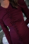 Μπορντο μιντι φορεμα απο απαλο υφασμα με μικρες σουρες στο μπροστινο μερος εως κατω απο τη μεση. Καταληγει σε πλουσια φουστα ελαφρως ασυμμετρη τονιζοντας τη θηλυκη σιλουετα. Ιδανικο για απογευματινες και βραδυνες περιστασεις. Το μοντελο φοραει XSmall και εχει υψος 1.76cm. New Autumn-Winter 2025 collection. 48% Cotton, 68% Poly, 3% Elastane. Κατασκευαζεται στην Ισπανια.