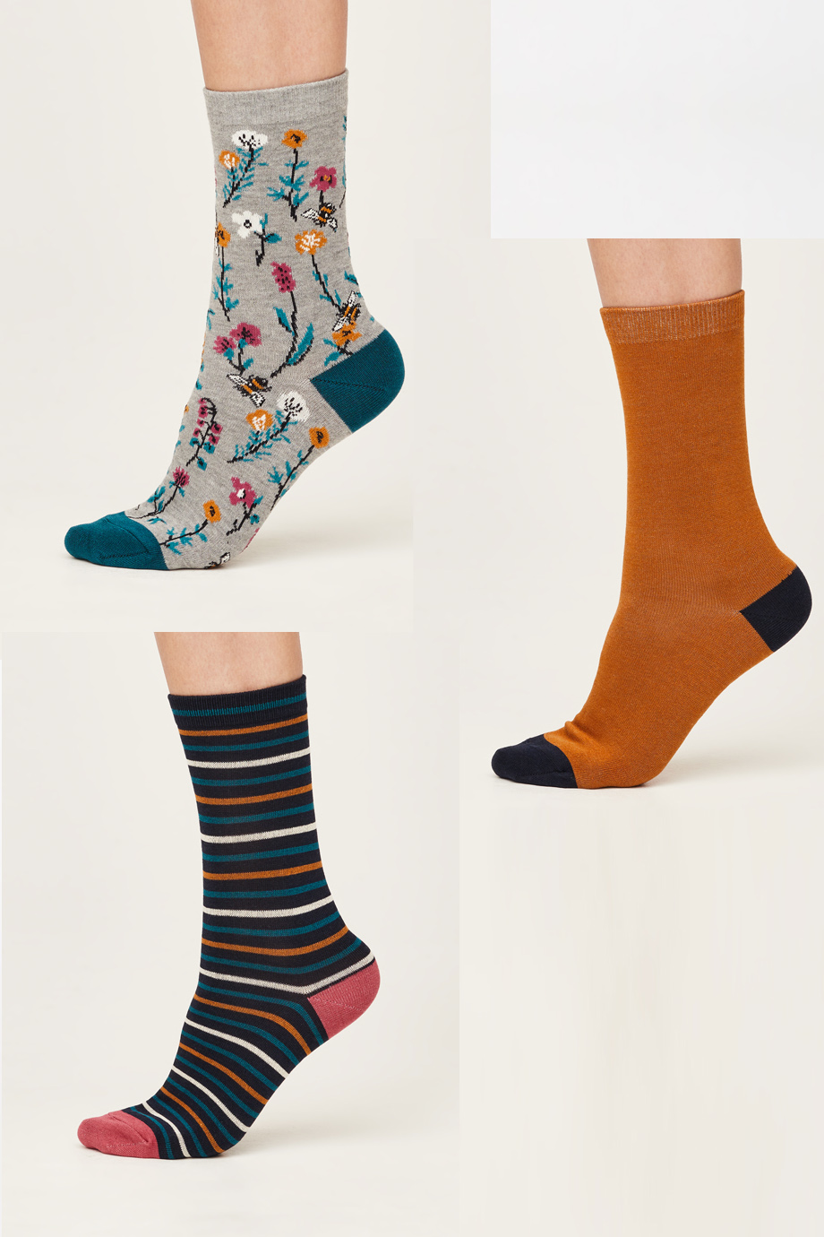 Πακετο με τρια ζευγαρια γυναικειες καλτσες με διαφορετικα ζακαρ σχεδια απο ιδιαιτερα απαλο πιστοποιημενο οργανικο βαμβακι και βισκοζη που προερχεται απο μπαμπου. Αναπνεουν, ειναι φυσικα αντιβακτηριδιακες, ανθεκτικες και ελαστικες. Ειναι one size για μεγεθος παπουτσιου απο 37 εως 41. Συνθεση: 54% Viscose που προερχεται απο Μπαμπου, 22% Πιστοποιημενο Οργανικο Βαμβακι, 22% Ανακυκλωμενο Πολυεστερ, 2% Elastane.