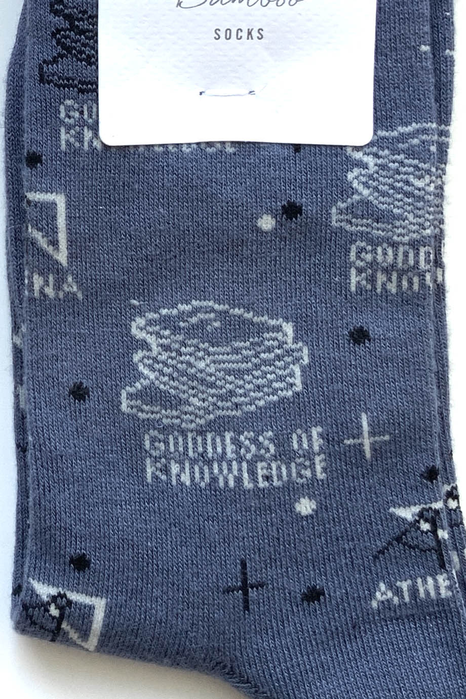 Καλτσες γυναικειες απο απιστευτα απαλο μπαμπου, πιστοποιημενο οργανικο βαμβακι και ανακυκλωμενο πολυεστερ με ζακαρ σχεδιο Athina Goddess of Knowledge. Οι βιωσιμες καλτσες ειναι φυσικα αντιβακτηριδιακες και αντιμυκητιακες, επιτρεπουν στο δερμα να αναπνεει και ειναι φιλικες για τα ποδια αλλα και για τον πλανητη μας. Ειναι ελαστικες, one size για μεγεθος παπουτσιου απο 37 εως 41. Συνθεση: 54% Viscose που προερχεται απο Μπαμπου, 22% Πιστοποιημενο Οργανικο Βαμβακι, 22% Ανακυκλωμενο Πολυεστερ, 2% Elastane.