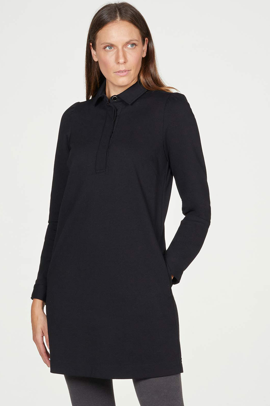 Το μικρο μαυρο φορεμα τωρα βιωσιμο χαρη στη Thought! Ελαστικο και απαλο με μοναδικη αισθηση, απο "πλουσιο" υφασμα με οργανικο βαμβακι που "αναπνεει" και μπορει να φορεθει ολο το χειμωνα με καλσον σαν κοντο φορεμα ή σαν τουνικ. Ειναι σε Α-γραμμη με τσεπες στο πλαι, γιακαδακι και γυαλιστερα μαυρα κουμπια στο λαιμο και στις μανσετες. Αψογα ραμμενο εχει εσωτερικη κορδελλα στον ποδογυρω για να μη χανει το σχημα του. Το μακρος του ειναι περιπου 90cm. Autumn-Winter collection. Συνθεση: 68% Πιστοποιημενο Οργανικο Βαμβακι, 28% Ανακυκλωμενο Nylon, 4% Elastane.