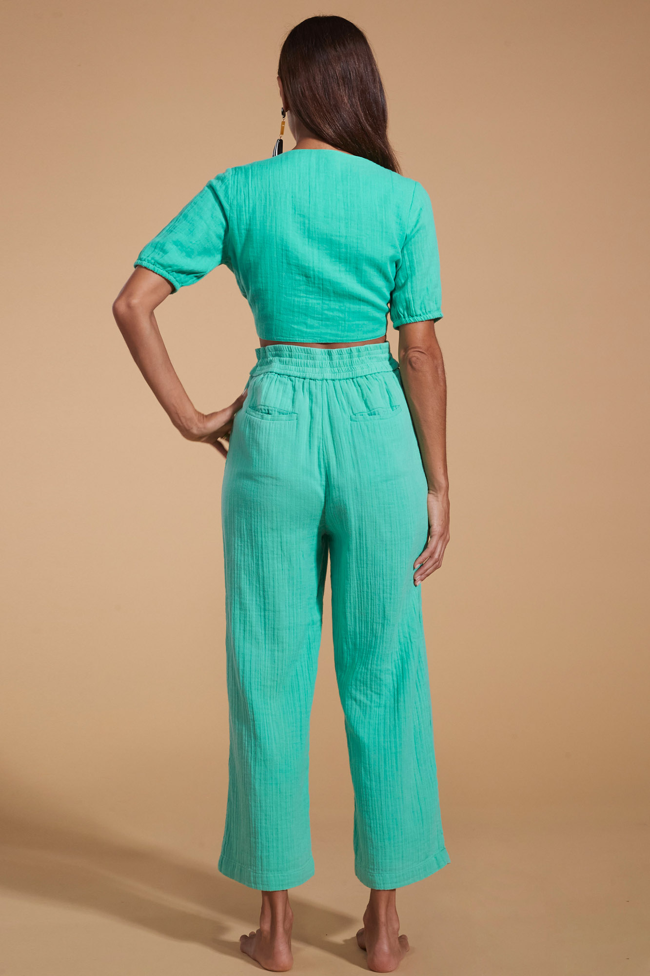 Κοντομανικο τοπ με μπροστινο δεσιμο σε καλοκαιρινο εντονο χρωμα της μεντας. Συνδιαστε το με την παντελονα Tahiti για ενα super-chic total look. Ειναι απο απαλο οργανικο βαμβακι GOTS (δηλαδη που περιοριζει τη χρηση τοξικων και αλλων χημικων κατα την παραγωγη του) που "αναπνεει" και εχει υπεροχη αισθηση στο σωμα. Ειναι φοδραρισμενο με βαμβακερο υφασμα. Συνθεση: 100% Πιστοποιημενο Οργανικο Βαμβακι GOTS.