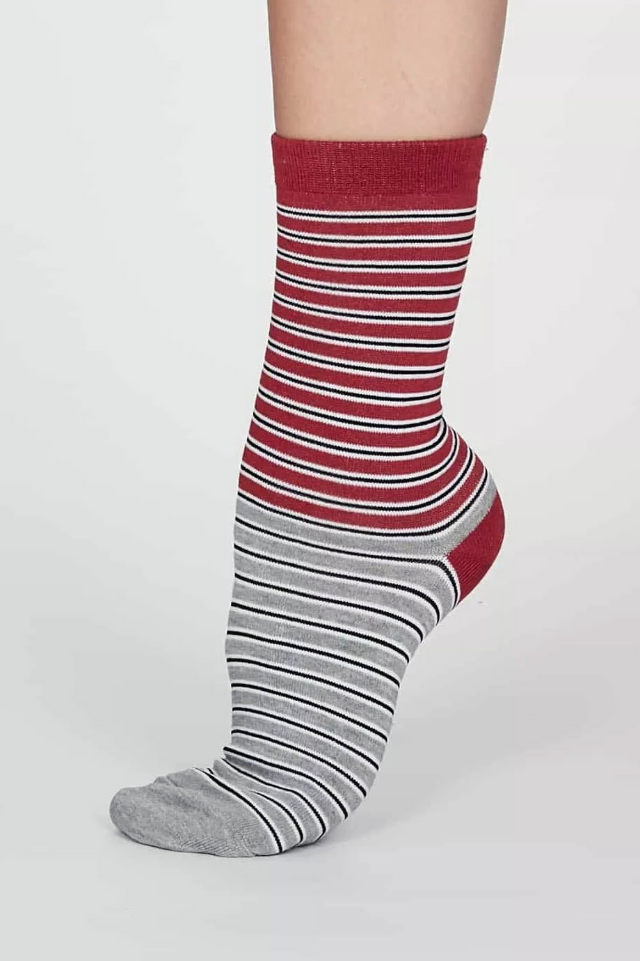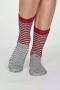 Καλτσες γυναικειες απο απιστευτα απαλο μπαμπου, πιστοποιημενο οργανικο βαμβακι και ανακυκλωμενο πολυεστερ με διαφορετικα ριγε ζακαρ. Οι βιωσιμες καλτσες ειναι φυσικα αντιβακτηριδιακες και αντιμυκητιακες, επιτρεπουν στο δερμα να αναπνεει και ειναι φιλικες για τα ποδια αλλα και για τον πλανητη μας. Ειναι ελαστικες, one size για μεγεθος παπουτσιου απο 37 εως 41. Συνθεση: 54% Viscose που προερχεται απο Μπαμπου, 22% Πιστοποιημενο Οργανικο Βαμβακι, 22% Ανακυκλωμενο Πολυεστερ, 2% Elastane.