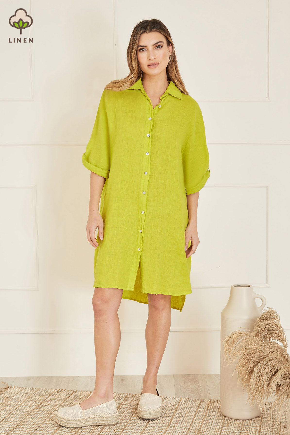 Μακρια πουκαμισα σε φαρδια γραμμη απο οργανικο λινο υφασμα, φιλικο προς το δερμα που "αναπνεει". Εχει γυρισμενα μανικια 3/4, κλασικο γιακα και μπροστινο κουμπωμα. Μπορει να φορεθει σαν φορεμα ή με παντελονα. Spring-Summer collection. Συνθεση: 100% Οργανικο Λινο.