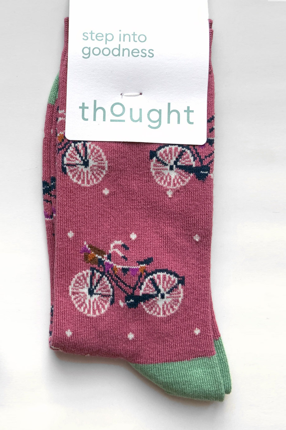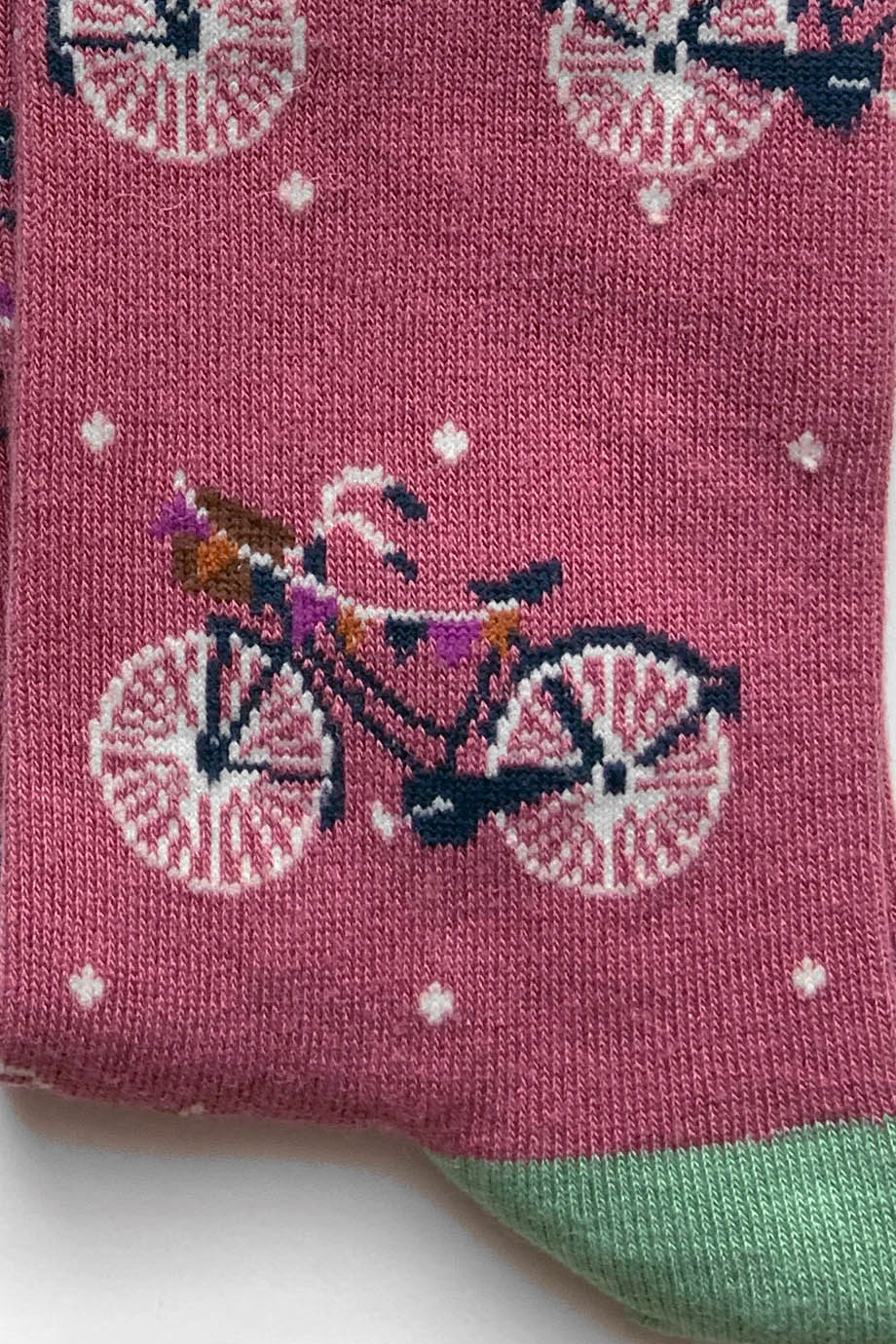 Καλτσες γυναικειες απο απιστευτα απαλο μπαμπου, πιστοποιημενο οργανικο βαμβακι και ανακυκλωμενο πολυεστερ με ζακαρ ποδηλατα. Οι βιωσιμες καλτσες ειναι φυσικα αντιβακτηριδιακες και αντιμυκητιακες, επιτρεπουν στο δερμα να αναπνεει και ειναι φιλικες για τα ποδια αλλα και για τον πλανητη μας. Ειναι ελαστικες, one size για μεγεθος παπουτσιου απο 37 εως 41. Συνθεση: 53% Viscose που προερχεται απο Μπαμπου, 16% Πιστοποιημενο Οργανικο Βαμβακι, 28% Ανακυκλωμενο Πολυεστερ, 3% Elastane.