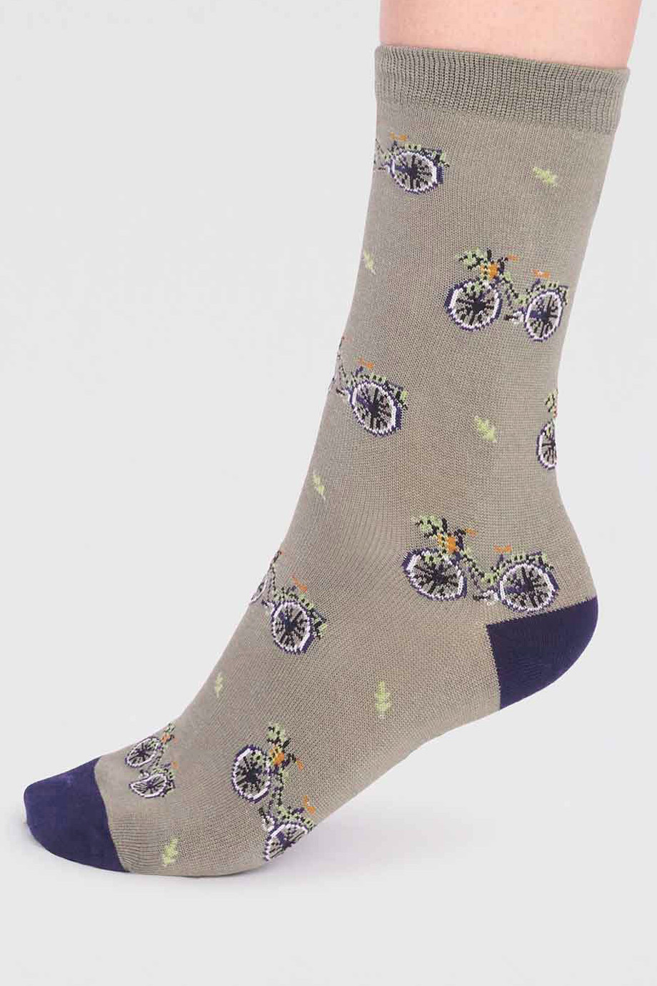 Καλτσες γυναικειες απο απιστευτα απαλο μπαμπου, πιστοποιημενο οργανικο βαμβακι και ανακυκλωμενο πολυεστερ με ζακαρ ποδηλατα. Οι βιωσιμες καλτσες ειναι φυσικα αντιβακτηριδιακες και αντιμυκητιακες, επιτρεπουν στο δερμα να αναπνεει και ειναι φιλικες για τα ποδια αλλα και για τον πλανητη μας. Ειναι ελαστικες, one size για μεγεθος παπουτσιου απο 37 εως 41. Συνθεση: 53% Viscose που προερχεται απο Μπαμπου, 16% Πιστοποιημενο Οργανικο Βαμβακι, 28% Ανακυκλωμενο Πολυεστερ, 3% Elastane.