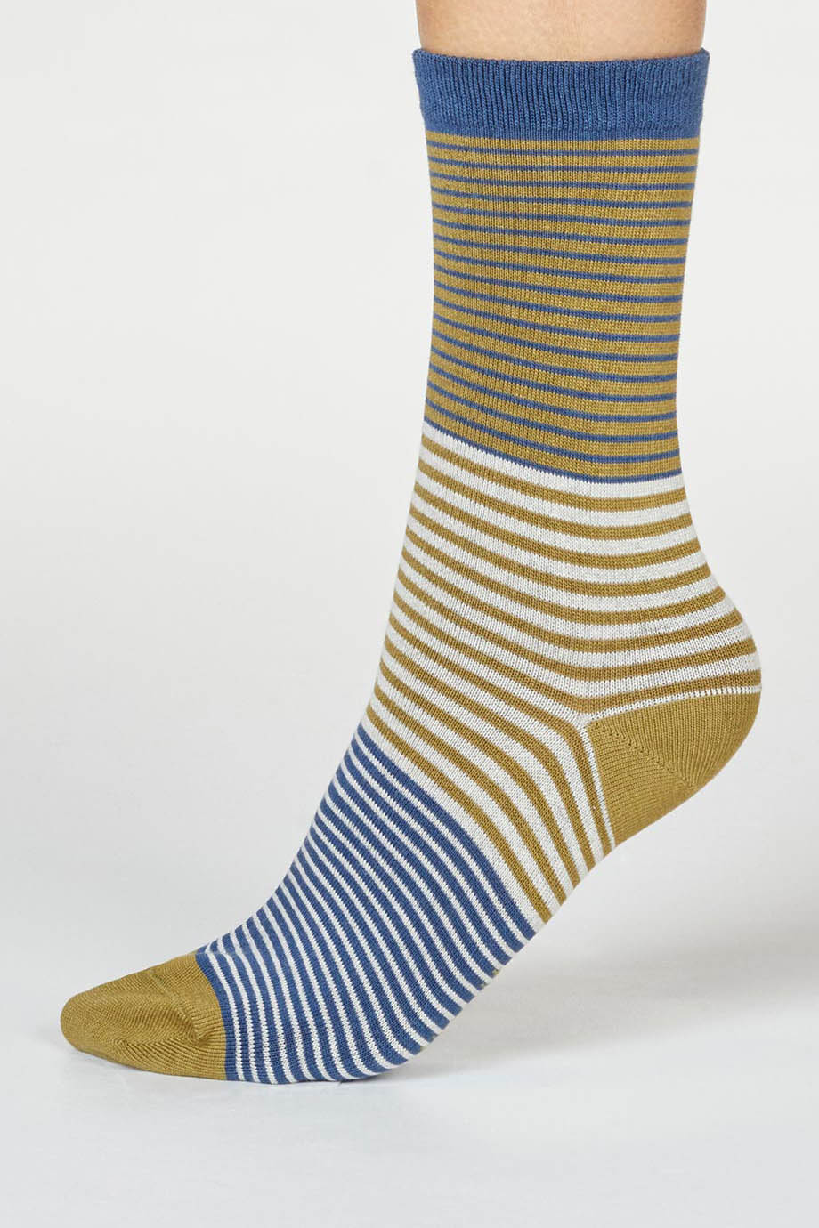 • Kathleen Stripe Bamboo Socks in Blue Slate