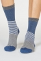 Καλτσες γυναικειες απο απιστευτα απαλο μπαμπου, πιστοποιημενο οργανικο βαμβακι και ανακυκλωμενο πολυεστερ με διαφορετικα ριγε ζακαρ. Οι βιωσιμες καλτσες ειναι φυσικα αντιβακτηριδιακες και αντιμυκητιακες, επιτρεπουν στο δερμα να αναπνεει και ειναι φιλικες για τα ποδια αλλα και για τον πλανητη μας. Ειναι ελαστικες, one size για μεγεθος παπουτσιου απο 37 εως 41. Συνθεση: 54% Viscose που προερχεται απο Μπαμπου, 22% Πιστοποιημενο Οργανικο Βαμβακι, 22% Ανακυκλωμενο Πολυεστερ, 2% Elastane.