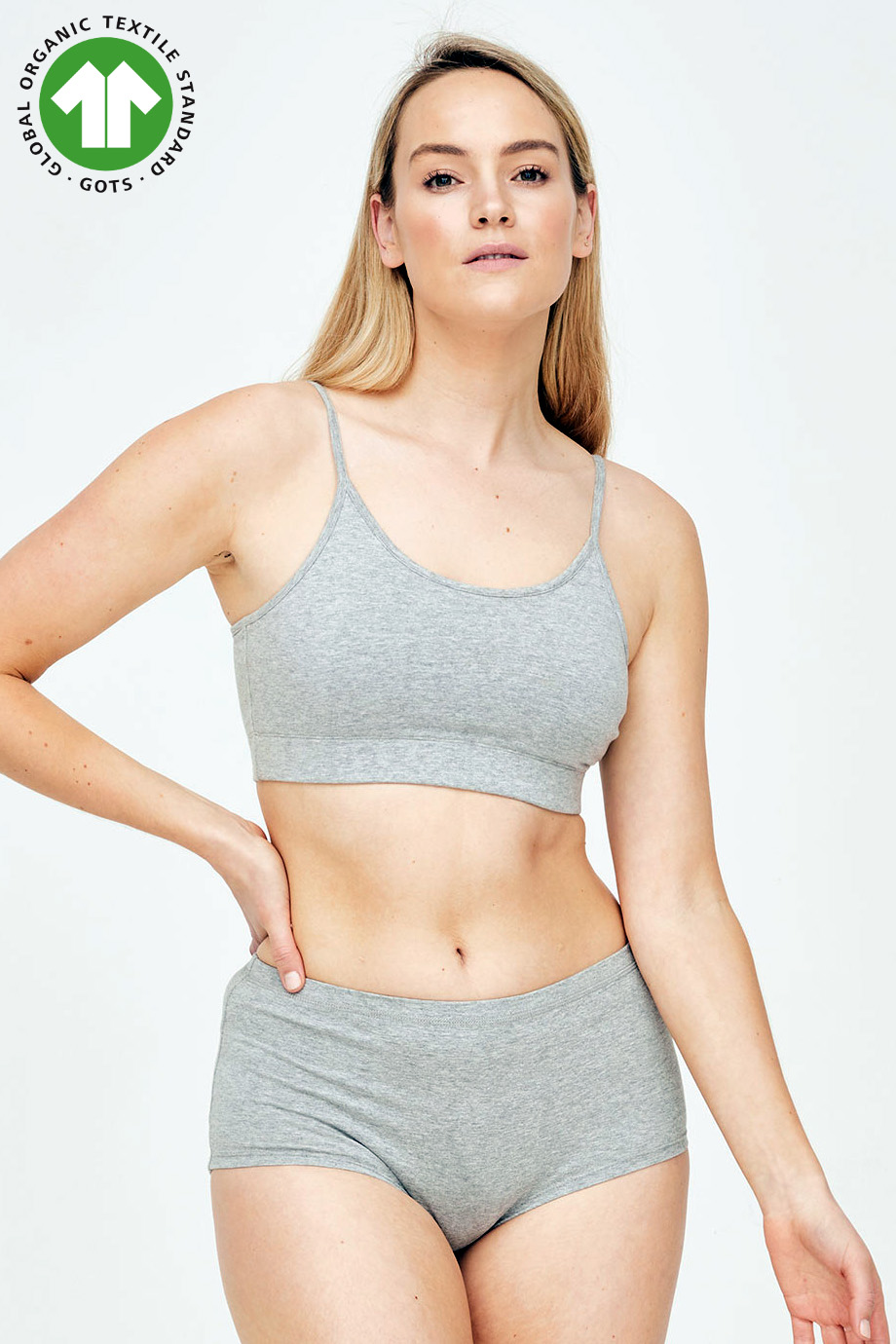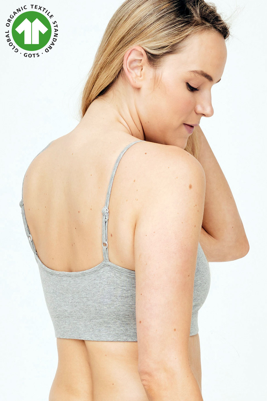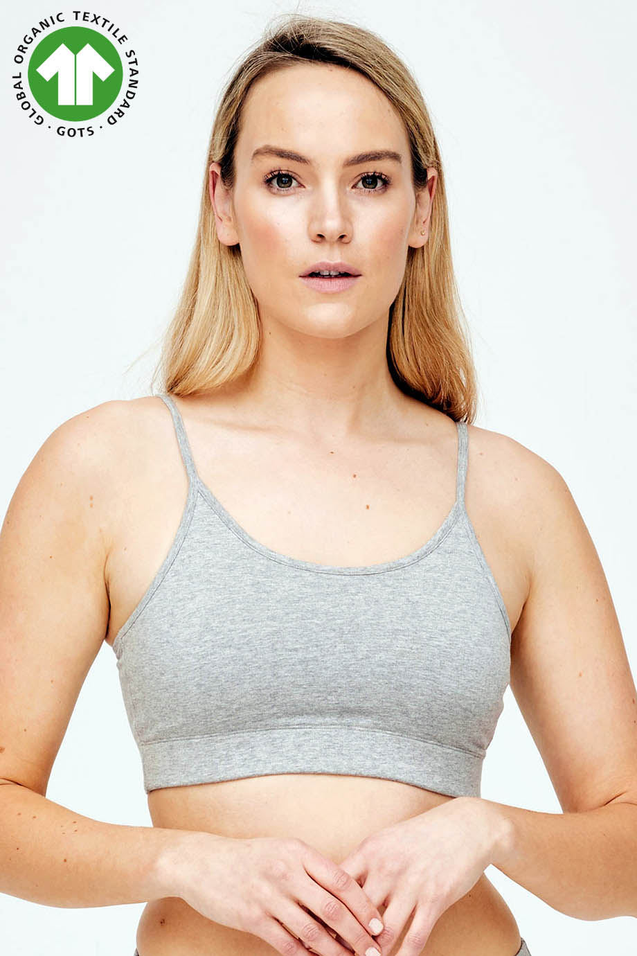Bralette-εσωρουχο γκρι μελανζε με τιραντες που αυξομειωνονται στο μηκος, απο πιστοποιημενο οργανικο βαμβακι GOTS (δηλαδη περιοριζει τη χρηση τοξικων λευκαντικων και αλλων χημικων κατα την παραγωγη του) αναπνεει και ειναι φιλικο προς το δερμα. Εφαρμοστο για να φοριεται σαν εσωρουχο αλλα και σαν τοπ. Συνθεση: 95% Πιστοποιημενο Οργανικο Βαμβακι GOTS, 5% Elastane.