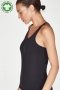 Τοπ μαυρο με τιραντες χιαστι στην πλατη απο πιστοποιημενο οργανικο βαμβακι GOTS (δηλαδη περιοριζει τη χρηση τοξικων λευκαντικων και αλλων χημικων κατα την παραγωγη του) αναπνεει και ειναι φιλικο προς το δερμα. Εφαρμοστο για να φοριεται σαν εσωρουχο αλλα και σαν τοπ. Συνθεση: 95% Πιστοποιημενο Οργανικο Βαμβακι GOTS, 5% Elastane.