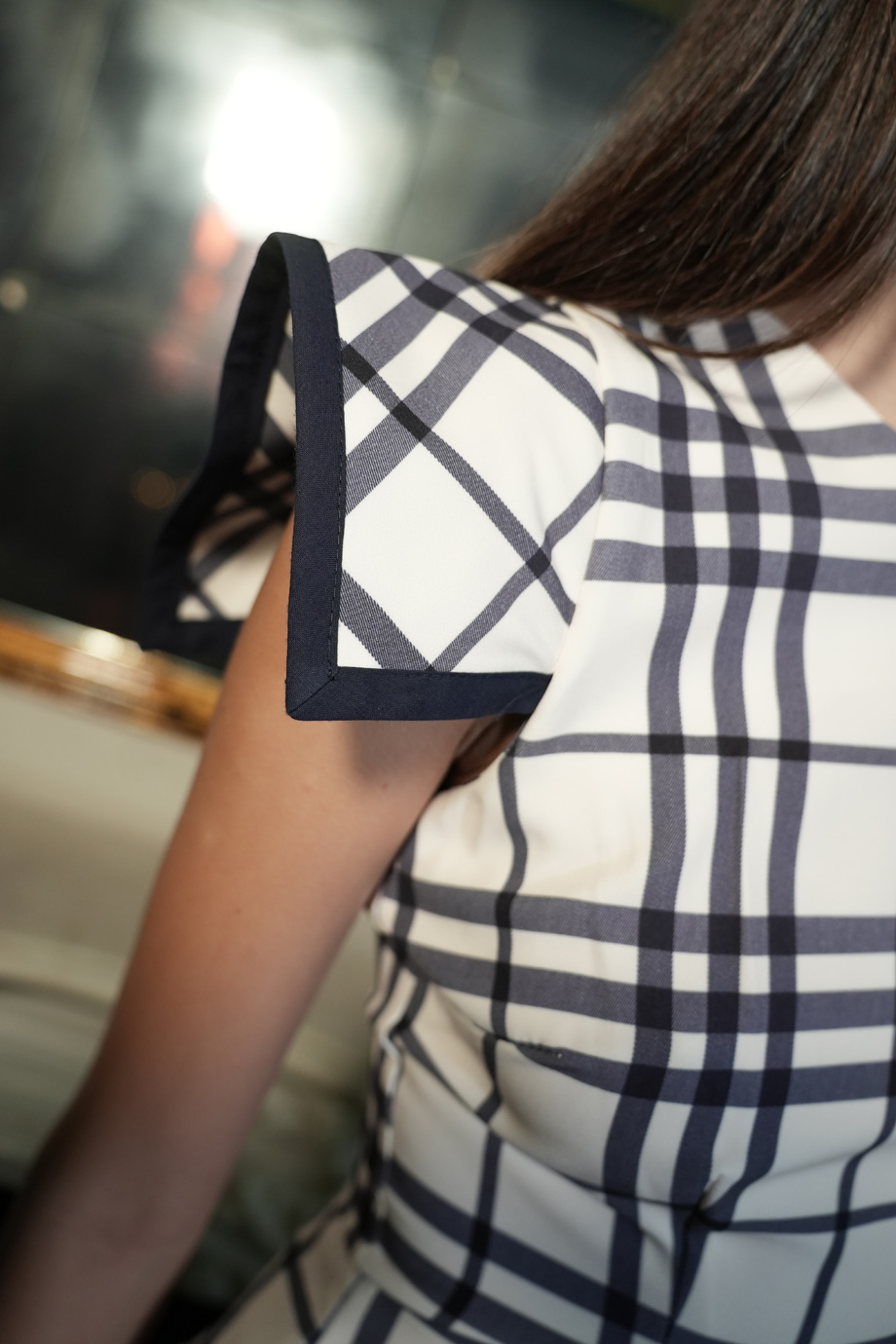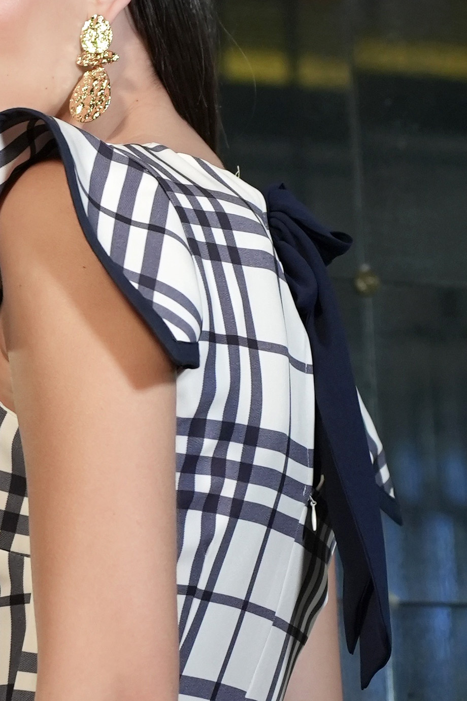 Καρο σετ, τοπ και παντελονι, απο υψηλης ποιοτητας βιοελαστικο υφασμα ιδανικο για περιστασεις αλλα και casual με αναλογο styling. Το πεπλουμ τοπ εχει προτεταμενους ωμους με σκουρο μπλε τελειωμα και δεσιμο πισω στην πλατη. Το παντελονι ειναι ψηλομεσο, εφαρμοστο με σκουρη μπλε λεπρομερεια στα πλαινα. Το μοντελο φοραει XSmall και εχει υψος 1.70 cm. New Spring-Summer 2026 collection. Συνθεση: 90% Polyester, 10% Elastane-Spandex. Κατασκευαζεται στην Ισπανια.