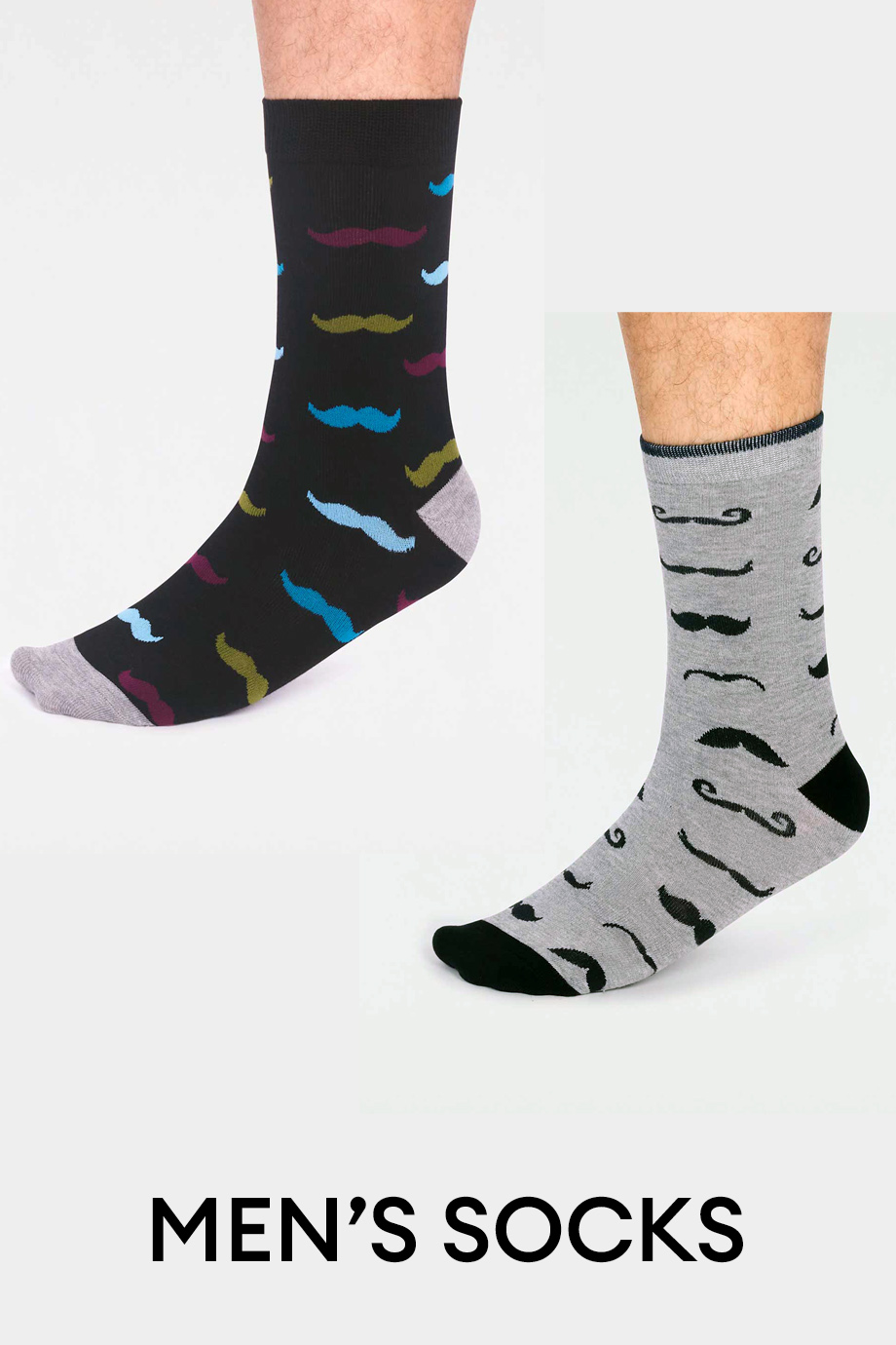 Πουγκακι που περιεχει δυο ζευγαρια ανδρικες καλτσες με διαφορετικα ζακαρ σχεδια moustache. Ειναι απο απαλο πιστοποιημενο οργανικο βαμβακι και βισκοζη απο μπαμπου, φυσικα αντιβακτηριδιακες, ιδιαιτερα απαλες και ελαστικες. Ειναι one size για μεγεθος παπουτσιου απο 40 εως 45. Συνθεση: 53% Μπαμπου, 16% Πιστοποιημενο Οργανικο Βαμβακι, 28% Ανακυκλωμενο Πολυεστερ, 3% Elastane.