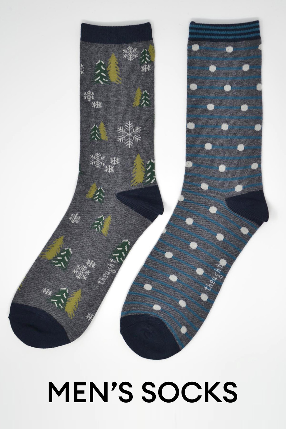 Γιορτινο κουτι με δυο ζευγαρια ανδρικες καλτσες με διαφορετικα ζακαρ σχεδια. Ειναι απο ιδιαιτερα απαλο πιστοποιημενο οργανικο βαμβακι και βισκοζη απο μπαμπου, φυσικα αντιβακτηριδιακες, ιδιαιτερα απαλες και ελαστικες. Ειναι one size για μεγεθος παπουτσιου απο 40 εως 45. Συνθεση: 54% Μπαμπου, 22% Πιστοποιημενο Οργανικο Βαμβακι, 22% Ανακυκλωμενο Πολυεστερ, 2% Elastane.