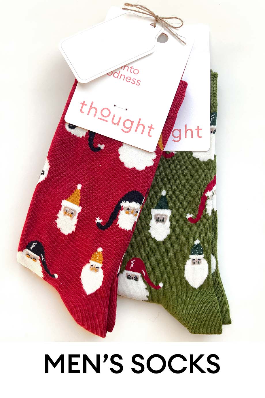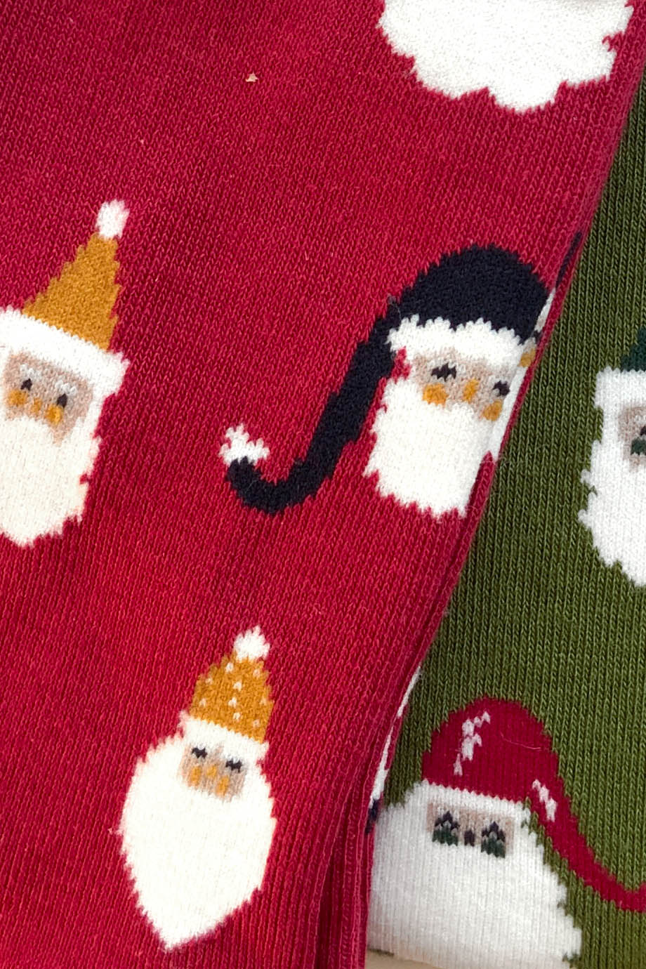 Δυο ζευγαρια ανδρικες καλτσες με χριστουγεννιατικο ζακαρ Αγιο Βασιλη και βαθυ κοκκινο και λαδι πρασινο. απο ιδιαιτερα απαλο πιστοποιημενο οργανικο βαμβακι και βισκοζη που προερχεται απο μπαμπου. Αναπνεουν, ειναι φυσικα αντιβακτηριδιακες, ανθεκτικες και ελαστικες. Ειναι one size για μεγεθος παπουτσιου απο 40 εως 45. Συνθεση: 53% Μπαμπου, 16% Πιστοποιημενο Οργανικο Βαμβακι, 28% Recycled Polyester, 3% Elastane.