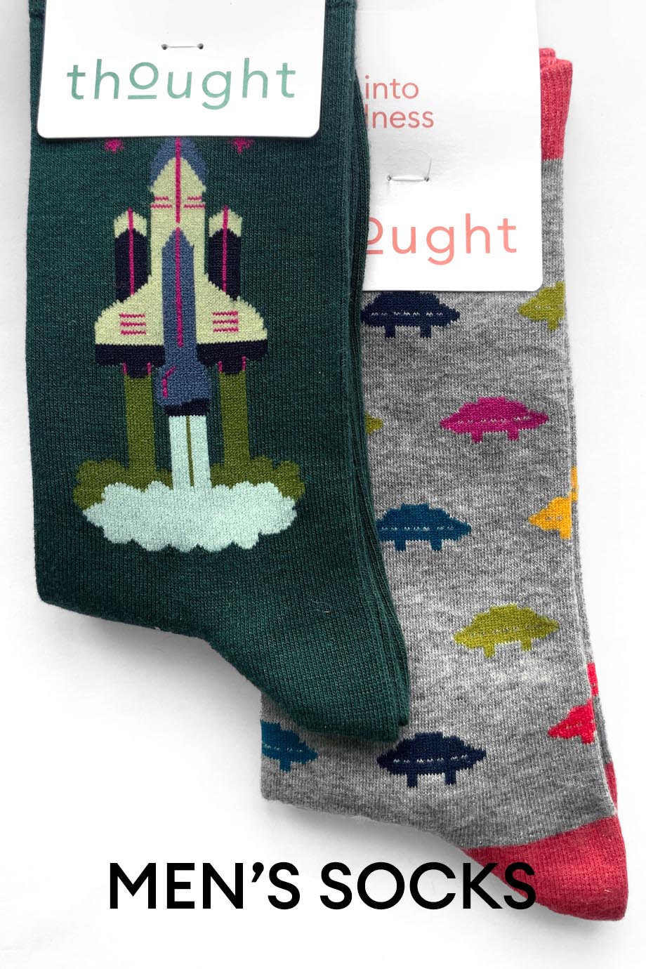 • MENS Onyx Rocket 2 GOTS Organic Cotton Socks in Green & Grey