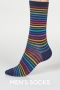 Aνδρικες καλτσες με ζακαρ rainbow ριγες σε σκουρο μπλε. Ειναι απο ιδιαιτερα απαλο πιστοποιημενο οργανικο βαμβακι GOTS (δηλαδη που περιοριζει τη χρηση τοξικων λευκαντικων και αλλων χημικων κατα την παραγωγη του). Οι βιωσιμες καλτσες επιτρεπουν στο δερμα να αναπνεει ειναι φυσικα αντιβακτηριδιακες, ιδιαιτερα απαλες και ελαστικες. Ειναι one size για μεγεθος παπουτσιου απο 40 εως 45. Συνθεση: 78% Πιστοποιημενο Οργανικο Βαμβακι GOTS, 19% Ανακυκλωμενο Ναυλον, 3% Elastane.