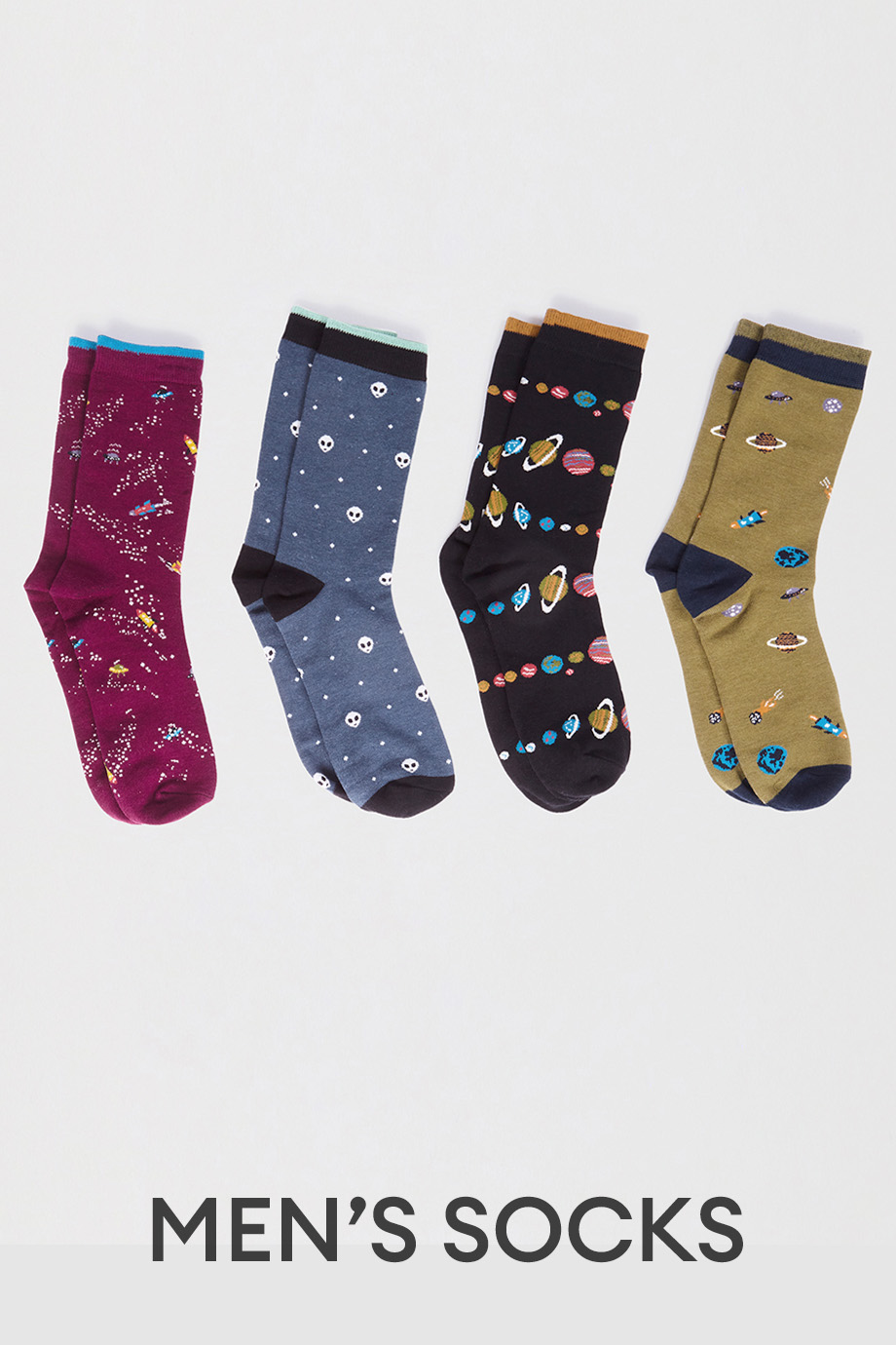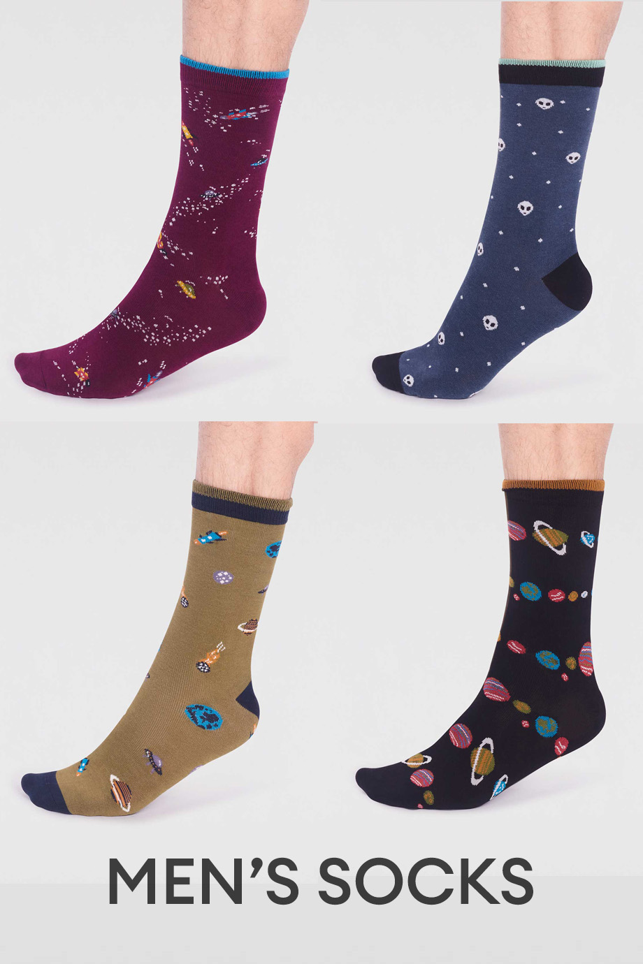 Κουτι που περιεχει τεσσερα ζευγαρια ανδρικες καλτσες με διαστημικα ζακαρ σχεδια. Ειναι απο απαλο πιστοποιημενο οργανικο βαμβακι και βισκοζη απο μπαμπου, φυσικα αντιβακτηριδιακες, ιδιαιτερα απαλες και ελαστικες. Το κουτι ειναι επαναχρησιμοποιησιμο και κατασκευασμενο με καρτα FSC (Forest Stewardship Council) και vegan κολλα. Ειναι one size για μεγεθος παπουτσιου απο 40 εως 45. Συνθεση: 53% Μπαμπου, 16% Πιστοποιημενο Οργανικο Βαμβακι, 28% Ανακυκλωμενο Πολυεστερ, 3% Elastane.