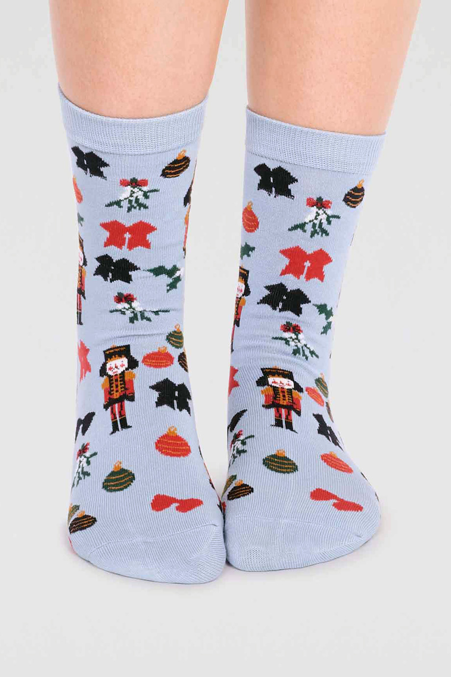 • Nutcracker Christmas Bamboo Organic Cotton Socks in Foam Blue