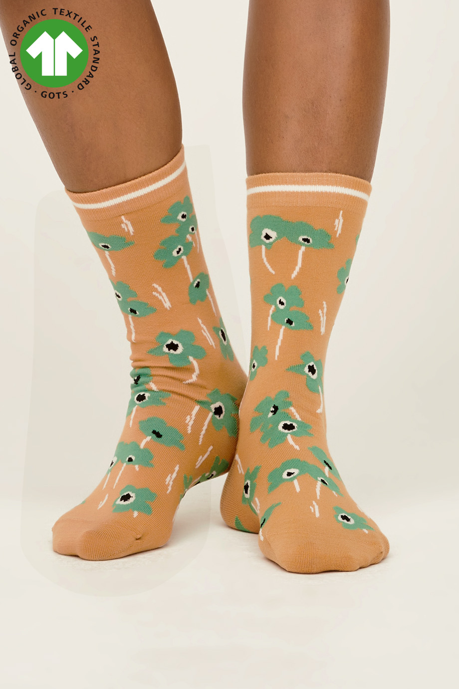 Καλτσες γυναικειες με floral απο απαλο πιστοποιημενο οργανικο βαμβακι GOTS (δηλαδη που περιοριζει τη χρηση τοξικων λευκαντικων και αλλων χημικων κατα την παραγωγη του) Οι καλτσες απο οργανικο βαμβακι επιτρεπουν στο δερμα να αναπνεει, ειναι φυσικα αντιβακτηριδιακες και αντιμυκητιακες αρα φιλικες για τα ποδια αλλα και για τον πλανητη μας. Ειναι one size για μεγεθος παπουτσιου απο 37 εως 41. Συνθεση: 78% Πιστοποιημενο Οργανικο Βαμβακι GOTS, 19% Ανακυκλωμενο Ναυλον, 3% Elastane.