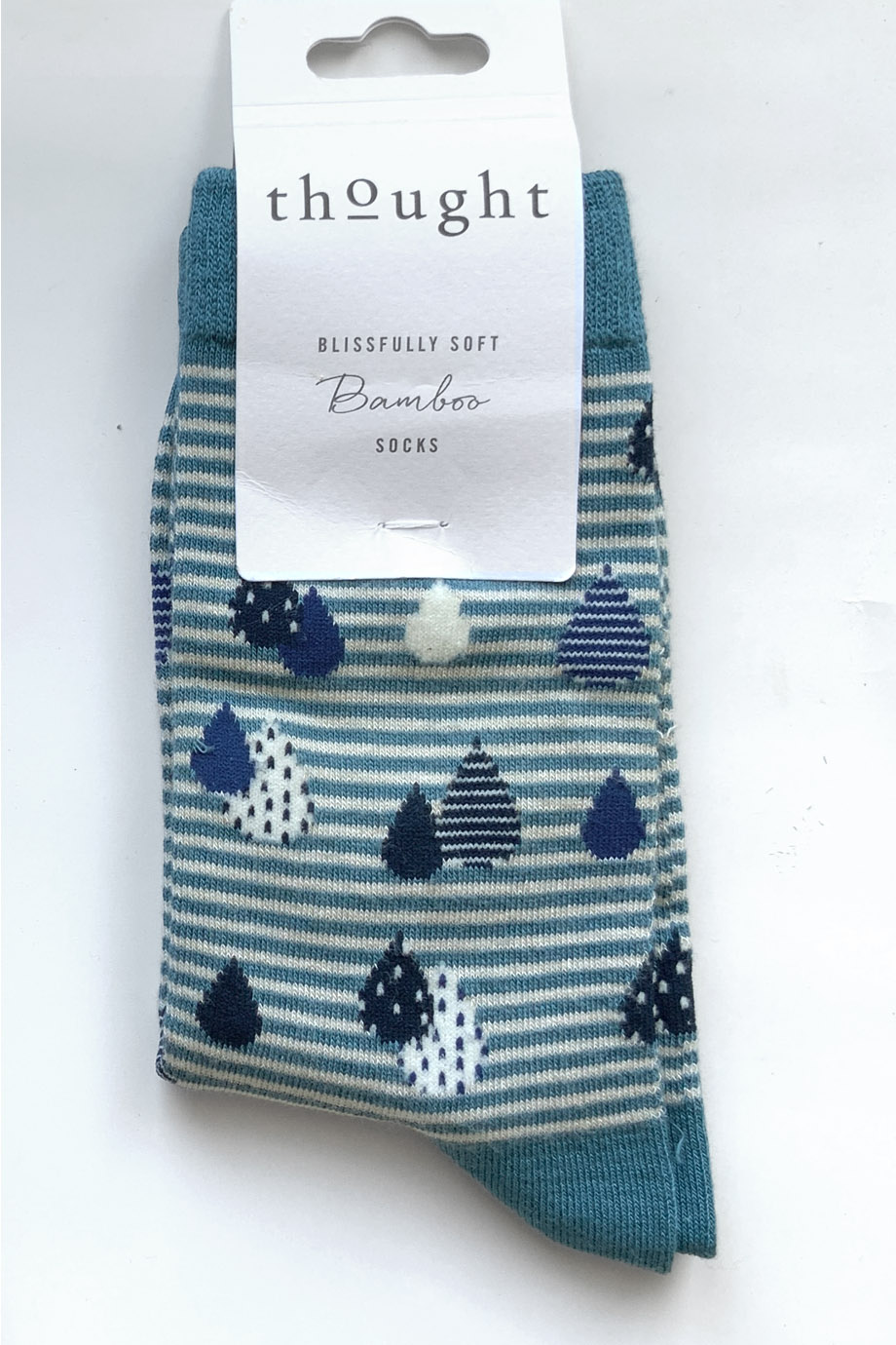 Καλτσες γυναικειες απο απιστευτα απαλο μπαμπου, πιστοποιημενο οργανικο βαμβακι και ανακυκλωμενο πολυεστερ με ζακαρ ριγες και σταγονες βροχης. Οι βιωσιμες καλτσες ειναι φυσικα αντιβακτηριδιακες και αντιμυκητιακες, επιτρεπουν στο δερμα να αναπνεει και ειναι φιλικες για τα ποδια αλλα και για τον πλανητη μας. Ειναι ελαστικες, one size για μεγεθος παπουτσιου απο 37 εως 41. Συνθεση: 54% Viscose που προερχεται απο Μπαμπου, 22% Πιστοποιημενο Οργανικο Βαμβακι, 22% Ανακυκλωμενο Πολυεστερ, 2% Elastane.