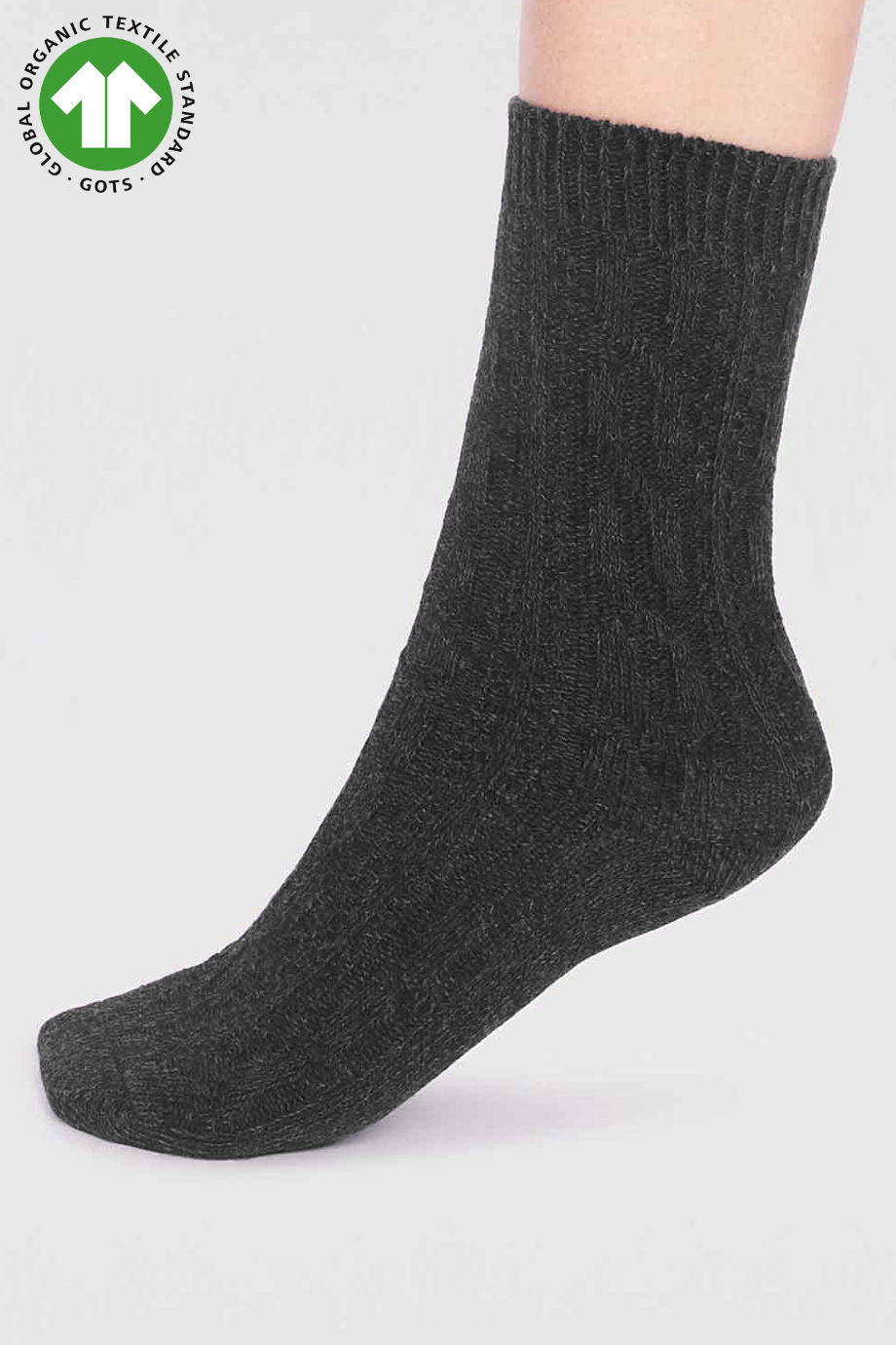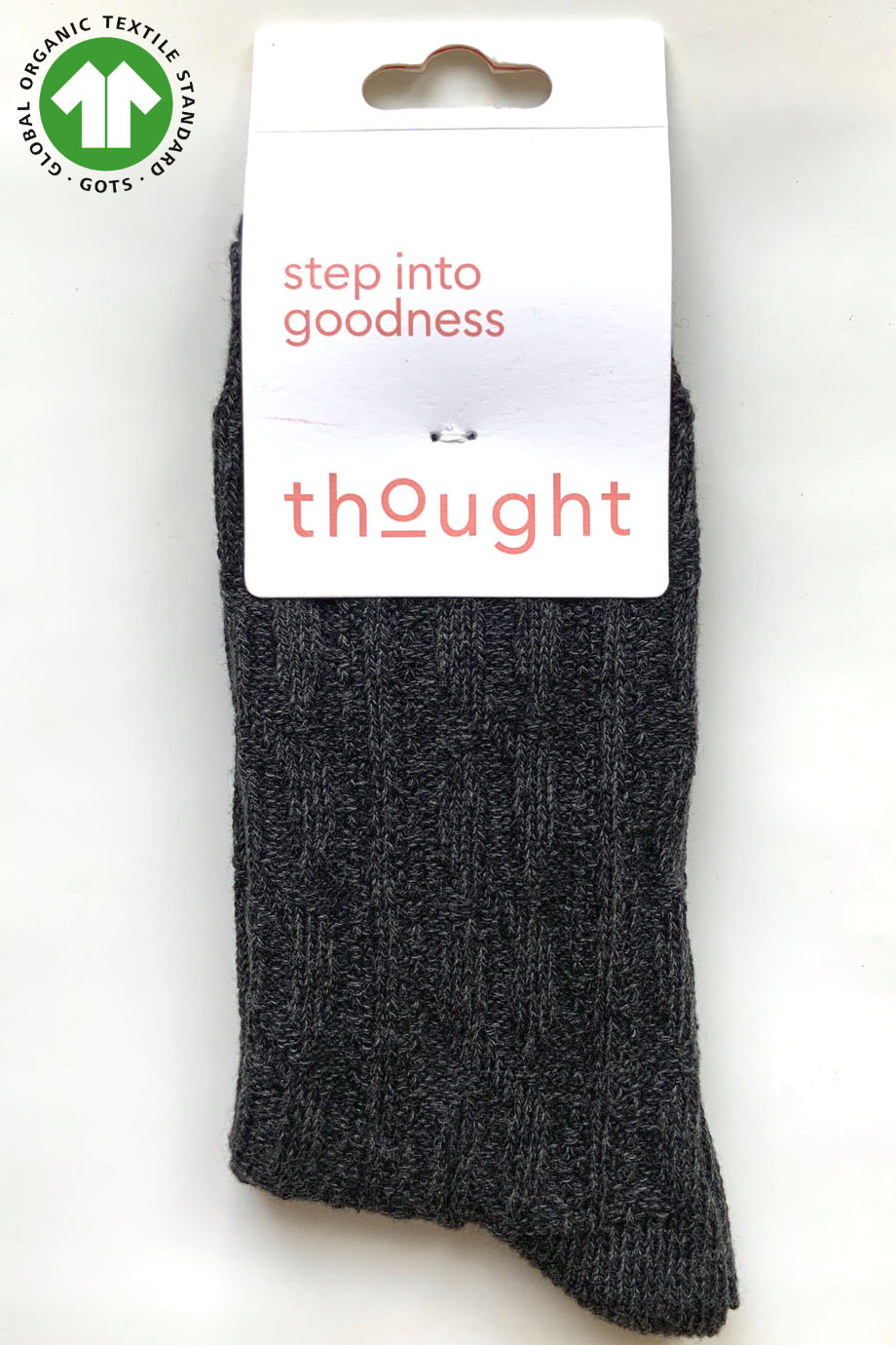 Καλτσες γυναικειες μελανζε γκρι σκουρες με αναγλυφη πλεξη οπακ, απο απαλο πιστοποιημενο οργανικο βαμβακι GOTS (δηλαδη που περιοριζει τη χρηση τοξικων λευκαντικων και αλλων χημικων κατα την παραγωγη του) Οι καλτσες απο οργανικο βαμβακι επιτρεπουν στο δερμα να αναπνεει, ειναι φυσικα αντιβακτηριδιακες και αντιμυκητιακες αρα φιλικες για τα ποδια αλλα και για τον πλανητη μας. Ειναι one size για μεγεθος παπουτσιου απο 37 εως 41. Συνθεση: 78% Πιστοποιημενο Οργανικο Βαμβακι GOTS, 19% Ανακυκλωμενο Ναυλον, 3% Elastane.