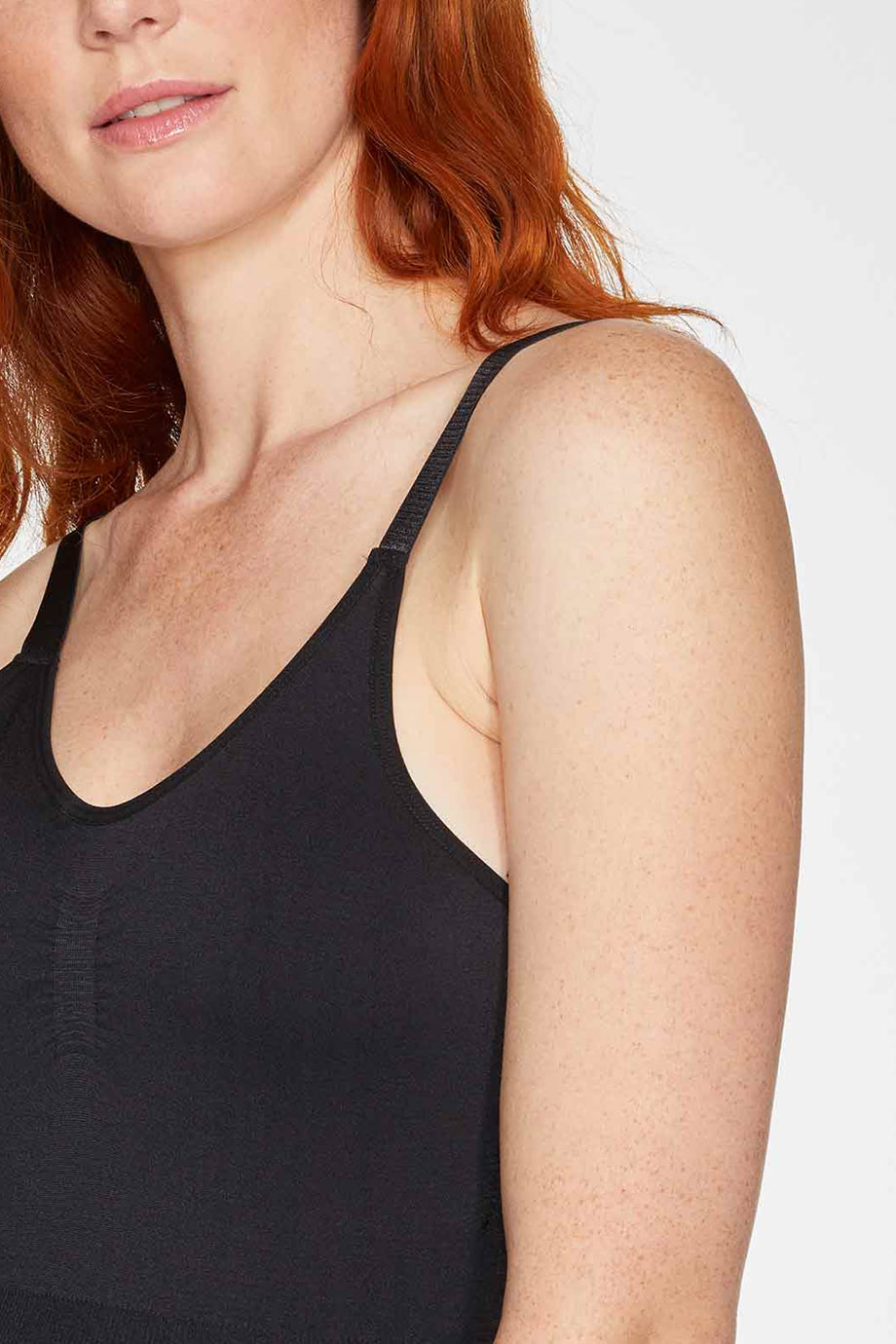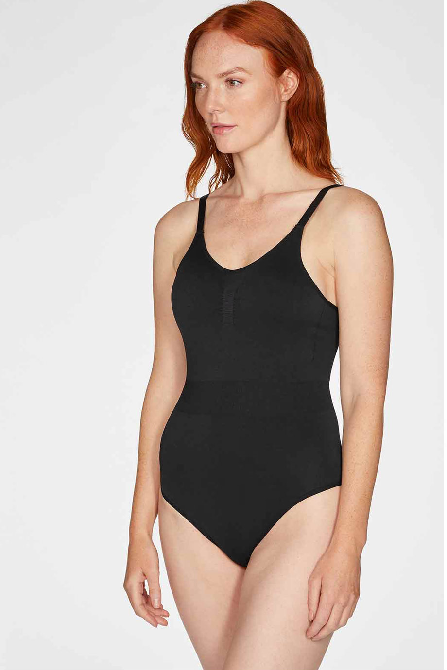 Μαυρο εξωπλατο κορμακι-εσωρουχο που αγκαλιαζει και σμιλευει το σωμα απο απαλο και ελαστικο ανακυλωμενο υφασμα. Εφαρμοστο για να φοριεται σαν εσωρουχο αλλα και σαν τοπ. Χωρις ραφες κουμπωνει στο καβαλο, εχει ρυθμιζομενες τιραντες και rib λεπτομερειες στο στηθος και τη μεση. Συνθεση: 95% Ανακυκλωμένο Ναιλον, 5% Elastane.