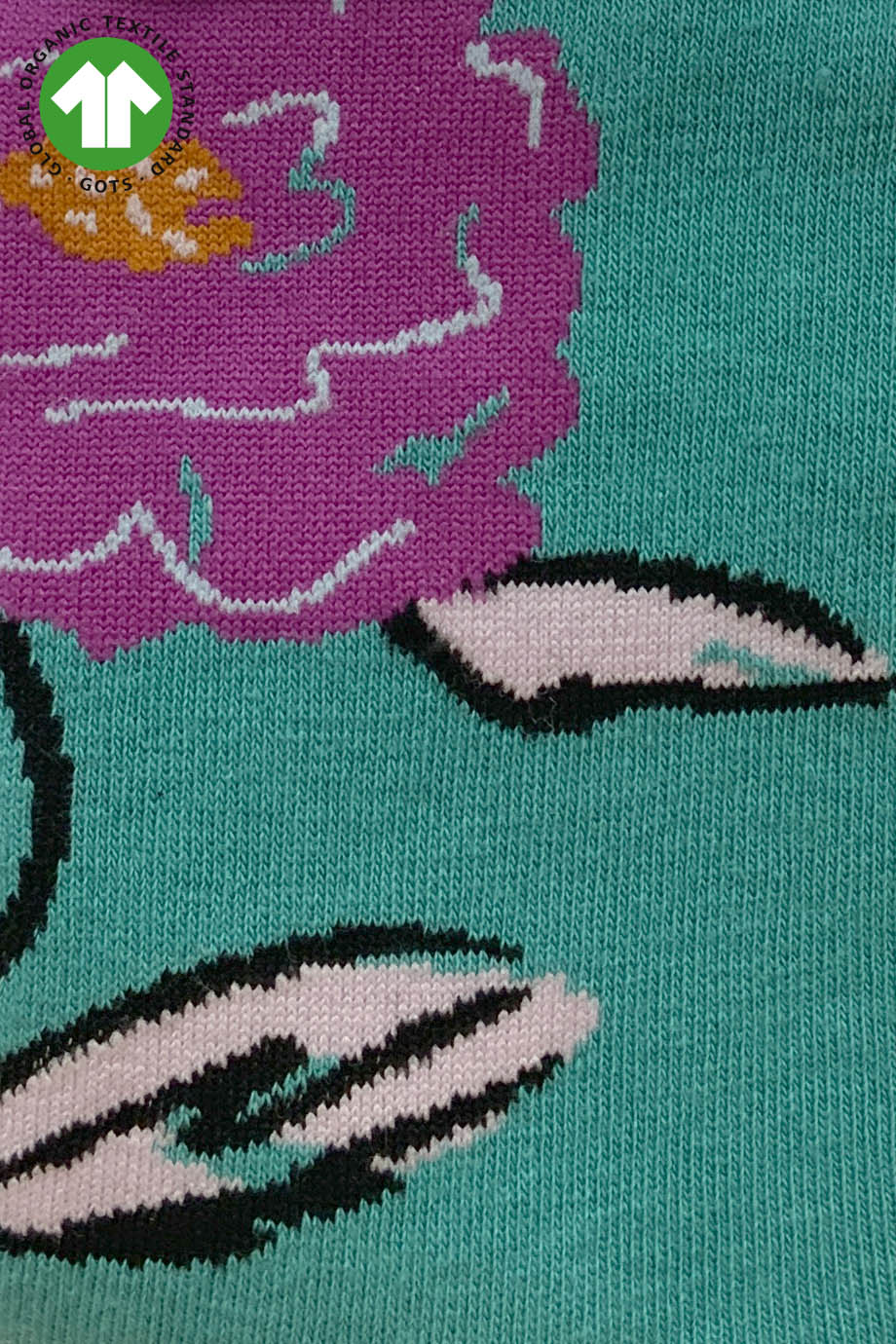 Καλτσες γυναικειες με floral ζακαρ απο απαλο πιστοποιημενο οργανικο βαμβακι GOTS (δηλαδη που περιοριζει τη χρηση τοξικων λευκαντικων και αλλων χημικων κατα την παραγωγη του) Οι καλτσες απο οργανικο βαμβακι επιτρεπουν στο δερμα να αναπνεει, ειναι φυσικα αντιβακτηριδιακες και αντιμυκητιακες αρα φιλικες για τα ποδια αλλα και για τον πλανητη μας. Ειναι one size για μεγεθος παπουτσιου απο 37 εως 41. Συνθεση: 78% Πιστοποιημενο Οργανικο Βαμβακι GOTS, 19% Ανακυκλωμενο Ναυλον, 3% Elastane.