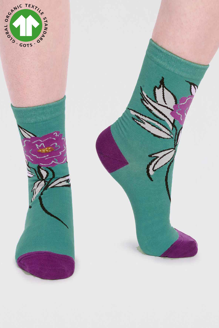 Rossa GOTS Organic Cotton Socks in Peacock Green