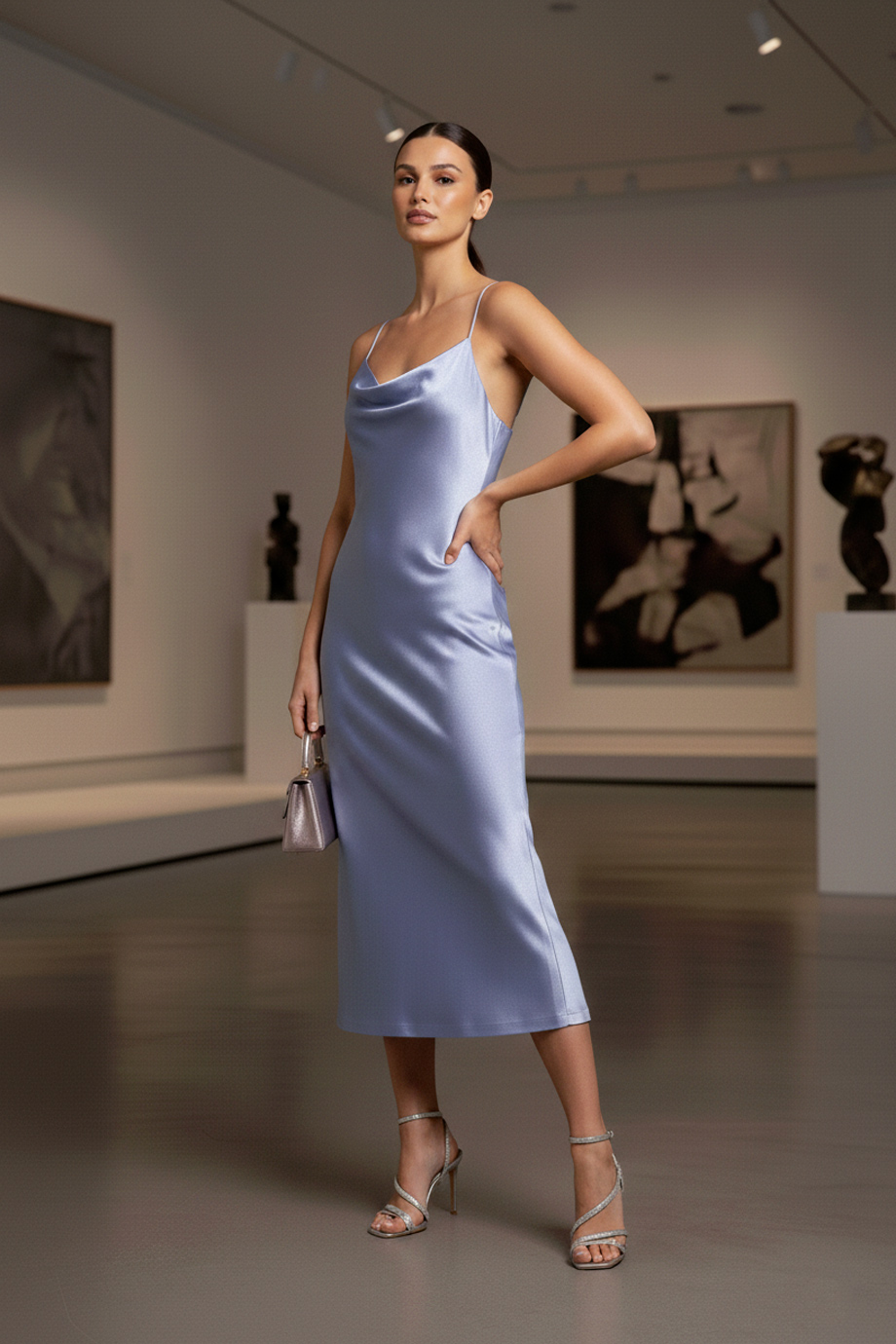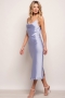 Σατεν εξωμο midi φορεμα απο πολυτελες απαλο υφασμα με μεταξενια υφη ιδανικο για βραδινες εξοδους και περιστασεις. Εχει πολυ θηλυκο ντεκολτε που "πεφτει" αναλαφρα στο στηθος, bias πατρον με εξαιρετικη εφαρμογη που αγκαλιαζει το σωμα με ανεση και η φουστα εχει διακριτικο ανοιγμα πισω για ανεση στην κινηση. Εχει λεπτες τιραντες και διπλο υφασμα στο στηθος. Συνθεση: 100% PES.