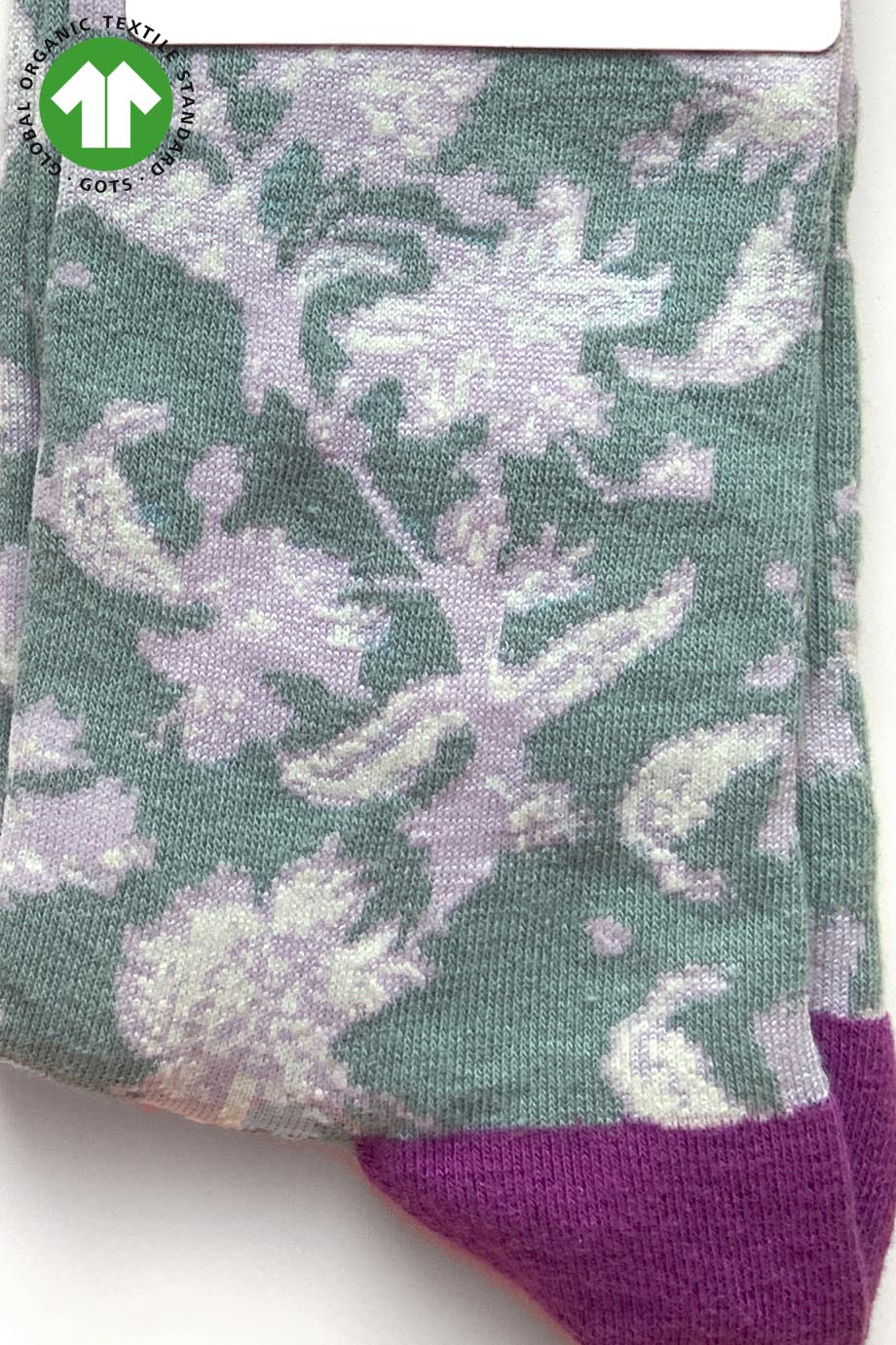 Καλτσες γυναικειες με χειμερινο floral ζακαρ απο απαλο πιστοποιημενο οργανικο βαμβακι GOTS (δηλαδη που περιοριζει τη χρηση τοξικων λευκαντικων και αλλων χημικων κατα την παραγωγη του) Οι καλτσες απο οργανικο βαμβακι επιτρεπουν στο δερμα να αναπνεει, ειναι φυσικα αντιβακτηριδιακες και αντιμυκητιακες αρα φιλικες για τα ποδια αλλα και για τον πλανητη μας. Ειναι one size για μεγεθος παπουτσιου απο 37 εως 41. Συνθεση: 78% Πιστοποιημενο Οργανικο Βαμβακι GOTS, 19% Ανακυκλωμενο Ναυλον, 3% Elastane.