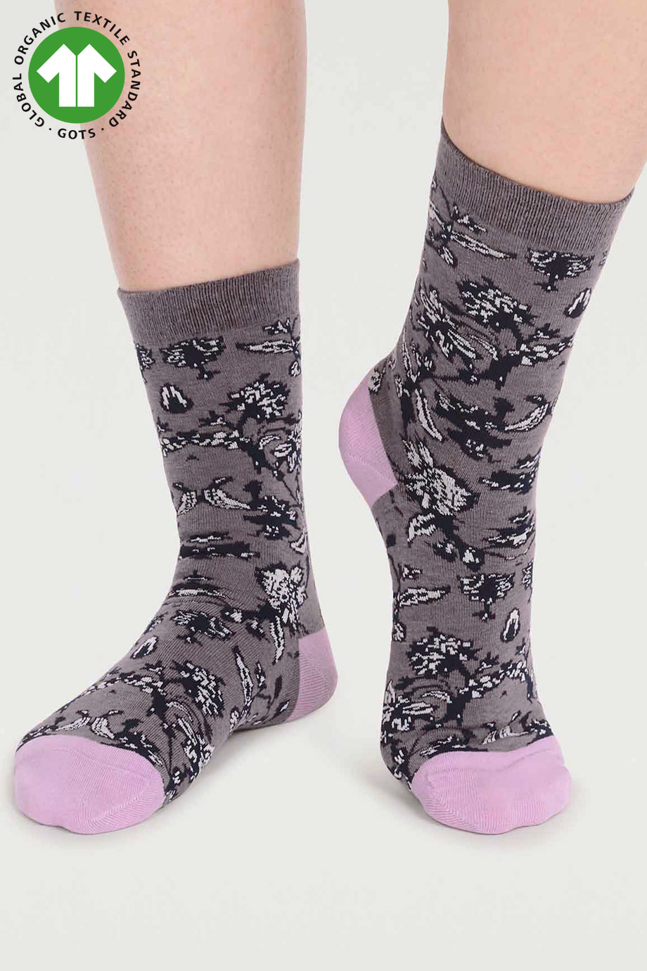 Καλτσες γυναικειες με χειμερινο floral ζακαρ απο απαλο πιστοποιημενο οργανικο βαμβακι GOTS (δηλαδη που περιοριζει τη χρηση τοξικων λευκαντικων και αλλων χημικων κατα την παραγωγη του) Οι καλτσες απο οργανικο βαμβακι επιτρεπουν στο δερμα να αναπνεει, ειναι φυσικα αντιβακτηριδιακες και αντιμυκητιακες αρα φιλικες για τα ποδια αλλα και για τον πλανητη μας. Ειναι one size για μεγεθος παπουτσιου απο 37 εως 41. Συνθεση: 78% Πιστοποιημενο Οργανικο Βαμβακι GOTS, 19% Ανακυκλωμενο Ναυλον, 3% Elastane.